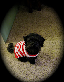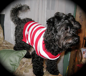 I bought Koko a little red and white stripped sweater to wear this winter when we walk. Doesn't she look cute?