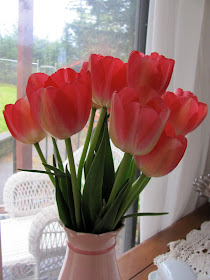 We came home and I cooked Easter dinner of salmon, chicken, asparagus, fruit, green salad, deviled eggs, and Angel food Cake with strawberries, blueberries and whipped cream for dessert.