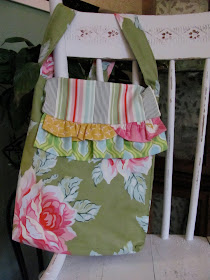 My sister sewed this great purse for me! I LOVE IT! LOVE the colors, the fabric, the ruffle! Thank you so much Becky for taking the time to create this beautiful bag for me!