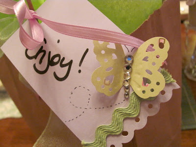 I finished the 75 wedding favors for my co-worker. I LOVE how they turned out! She did too :) I packaged them all up in a brown gift bag... with green tissue paper. Added some ribbon and a tag! So much fun!