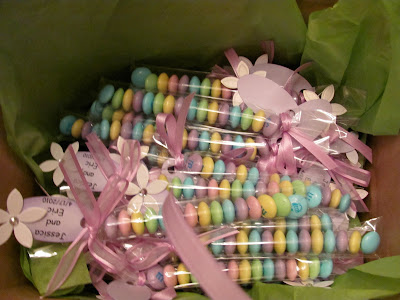 I finished the 75 wedding favors for my co-worker. I LOVE how they turned out! She did too :) I packaged them all up in a brown gift bag... with green tissue paper. Added some ribbon and a tag! So much fun!