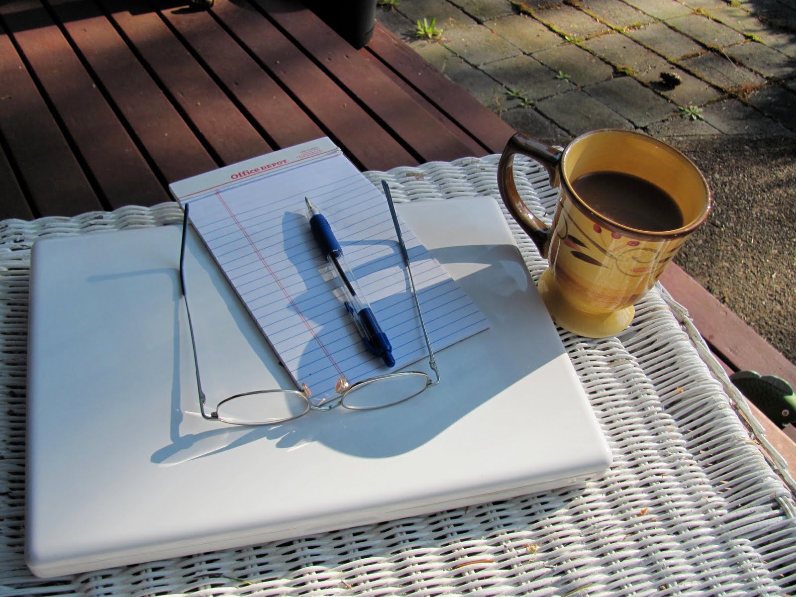 This morning I took my coffee, laptop and paper and pen outside on the chaise lounge.