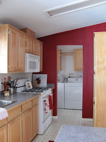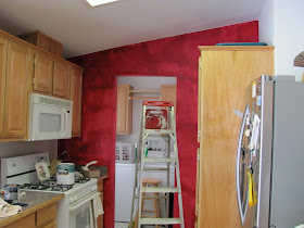 The red kitchen wall after 2 coats of paint! I hate red walls! Ugh! it took 5 coats of paint to cover it.