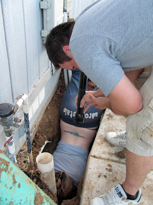 Anyway, about 30 minutes after Genna and Justin got home from work (Monday) after I made it to Reno in my broken rental truck, Justin noticed a pipe near the front of the house was leaking. So after we unloaded the truck Justin started digging. Remember, they have only been in this house not even 2 weeks!)