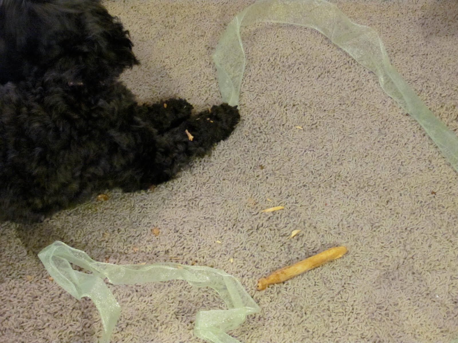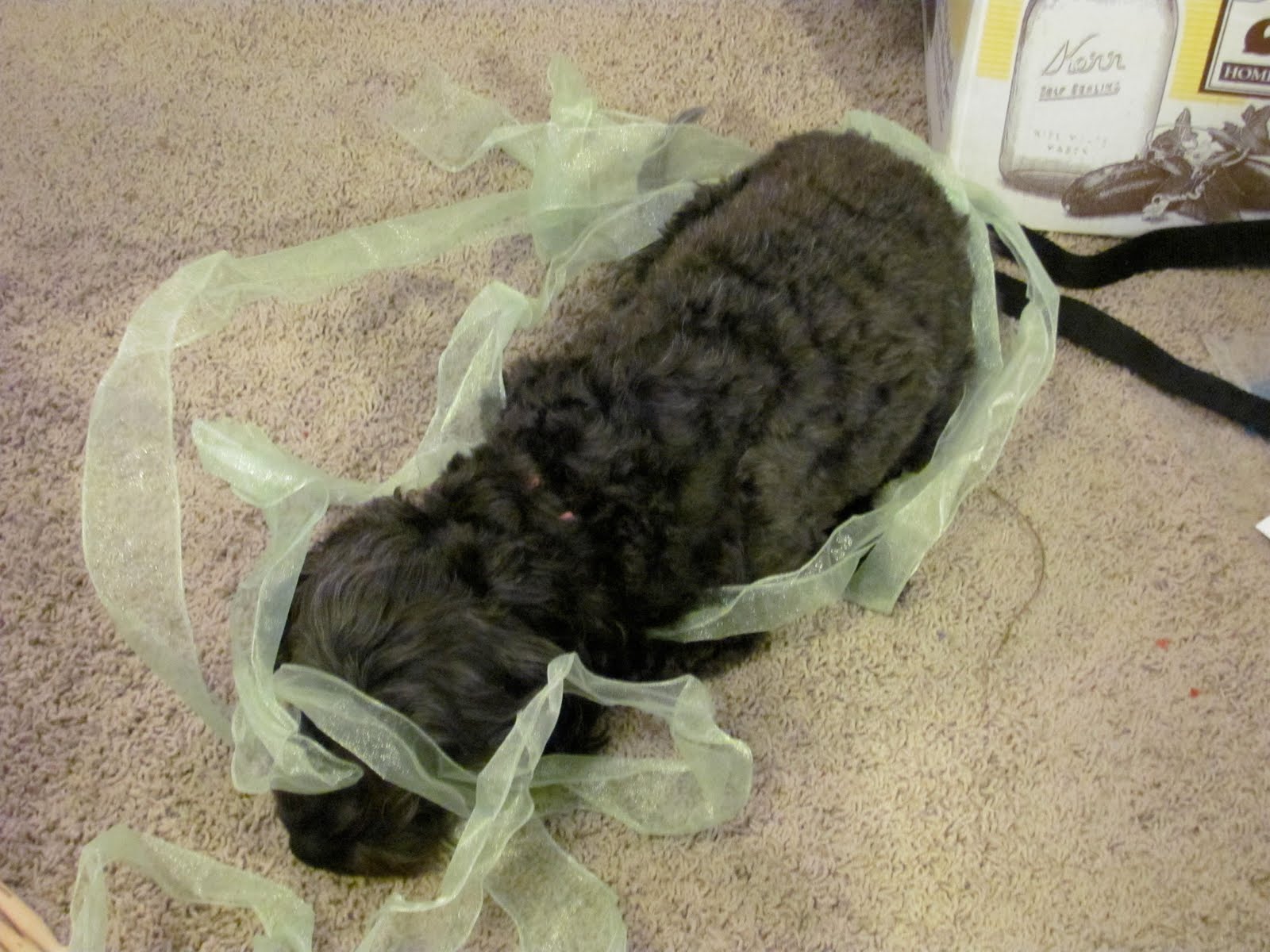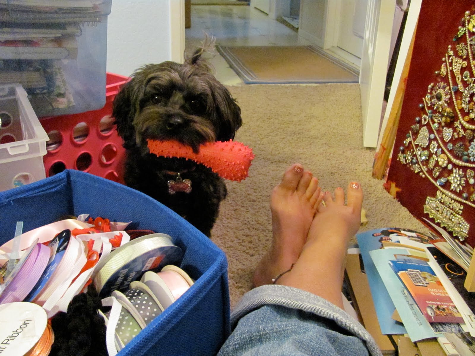 This is what Koko was busy doing while I was sorting ribbon! Silly dog, she is like having a toddler.