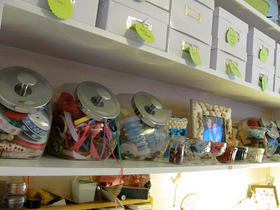 I also divided them into my jars, I put 2 colors in each jar. My wrinkle ribbon has it's own jar though =)