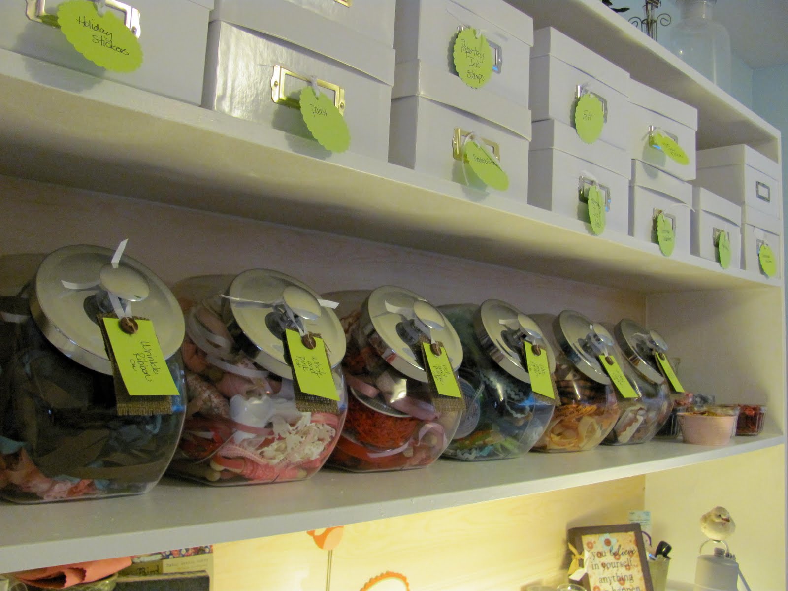 I also divided them into my jars, I put 2 colors in each jar. My wrinkle ribbon has it's own jar though =)