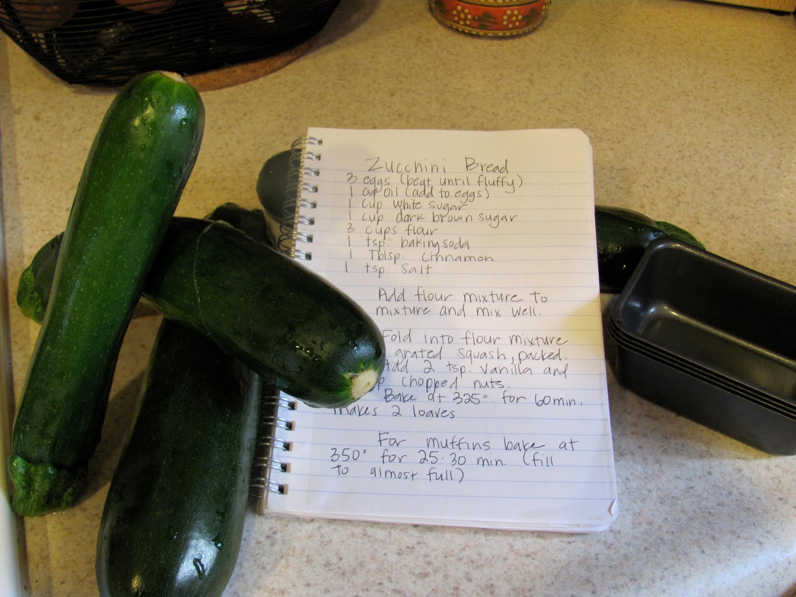 While I was visiting my nieces and nephews in California a few weeks ago they brought home some Zucchini muffins they had made at school that day from the garden they planted. (They go to a Charter school, wish I had been able to send my kids to one! They are really great!) Anyway, the muffins were delicious! So my sister and I got the recipe. I really wanted to substitute wheat flour and agave, but I am going to give some as a little gift, so I decided not to experiment with this batch.