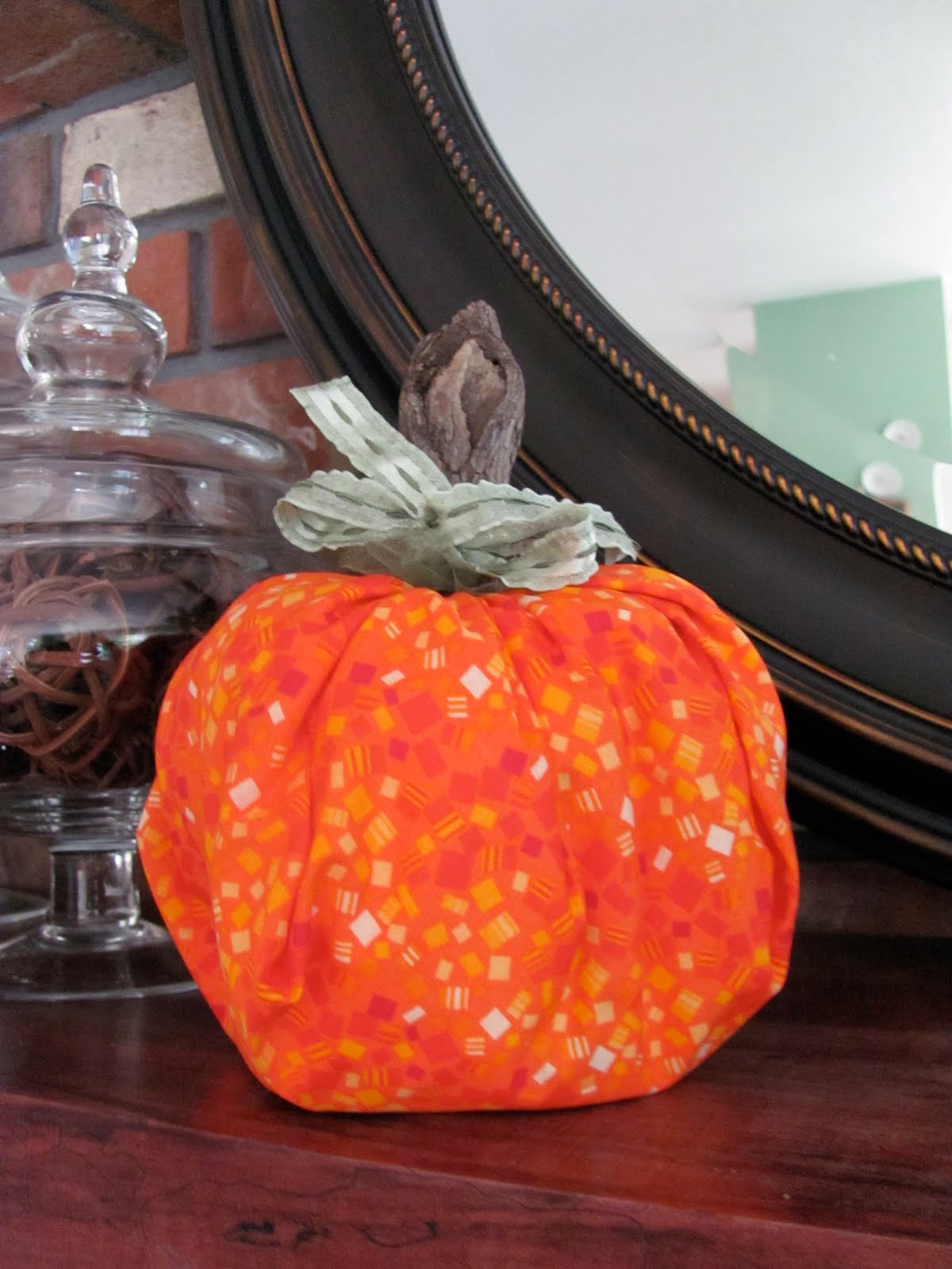 I also went to JoAnn and bought some cute fabric for my paper towel pumpkin. I am much happier with his looks now!