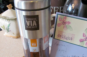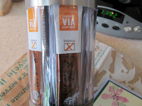 I received the BEST thing today in the mail from my best friend Kari! Thank you soooo much Kari! Have you seen these? I wish I would have had one when I was doing all my traveling! It holds the VIA packages of coffee IN it!
