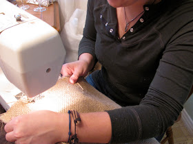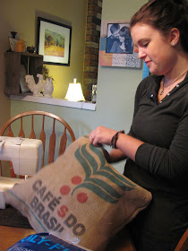 So what have I been up to? Umm, NOT packing stuff up! haha! My friend Andrea came over and sewed the coffee sack pillows last week.