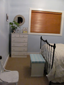 I need a few more things on the walls, but will take my time looking at flea markets and antique stores. Found the beautiful white throw on clearance at Pier One.