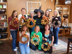 Last month we had a craft class in the cottage. We made fall wreaths from fabric and felt then added silk sunflowers and ribbon. Each wreath turned out so different!