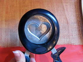 Next I placed my glittered hearts down on the glass, I knew I didn't want them to be on the same lines. The red one on the bottom is a suede look one.
