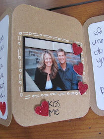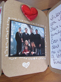 The mini book I did for my hubby. I designed the book and cut all the pieces out for everyone, then let them decorate theirs the way they wanted. I ordered the small size pictures from Snapfish. They came four to a 4x6 inch picture size. Perfect for this mini book!